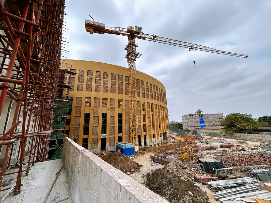 这是8月25日在刚果(金)首都金沙萨拍摄的中部非洲文化艺术中心项目施工现场。新华社记者 史彧 摄